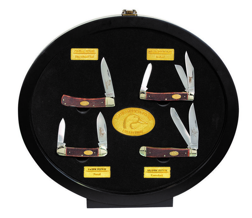 Four-piece pocket knife collection highlighting the North American waterfowl flyways